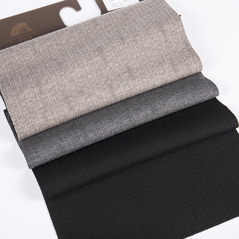 Nagykereskedelem Dombornyomott keretek Kötött jacquard poliészter viszkóz spandex sportruházati szövetek ruházathoz AW23025 Gyár, ajánlatunk