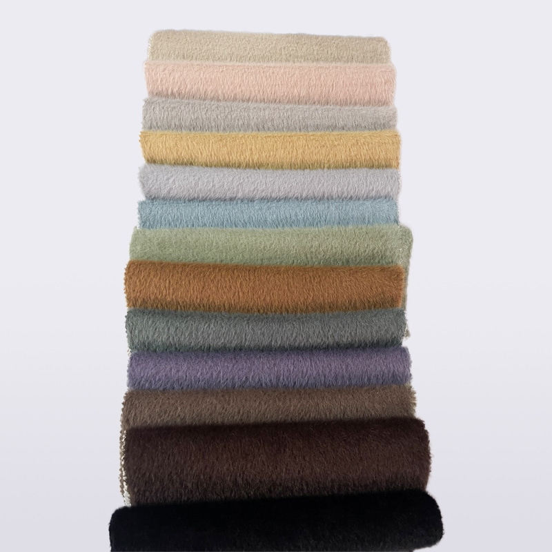 H1816 Poliészter nylon kötött műszálas szálcsiszolt nercszőrme téli ruházati szövetek a kiváló minőségű poliészter és nejlon kifinomult arányát alkalmazzák, biztosítva, hogy az anyag ne csak kiváló kopásállósággal és ráncállósággal rendelkezzen, hanem kiváló rugalmasságot és helyreállítást is biztosítson, így a hideg télen a ruhák ropogósak és stílusosak maradnak, és nem deformálódnak könnyen. A speciálisan hozzáadott kefés utánzat a természetes nerc finom érintését és meleg textúráját szimulálja, így a bőr minden centimétere érezheti a gyengéd burkolást, mintha meleg ölelésben lenne. A H1816 szövet divatos kialakításának köszönhetően a téli ruhatár sokoldalú elemévé válik. Legyen szó klasszikus fekete, fehér, vagy divatos szürke és bézs színről, könnyedén illeszthető különféle öltözködési stílusokhoz, az egyszerű hétköznapoktól az elegáns formális viseletig, tökéletesen integrálható. Figyelembe véve a modern élet gyors ütemét, a H1816 szövet a könnyű gondozásra is különös figyelmet fordít. Gyűrődés- és kopásálló tulajdonságai miatt a ruhák kevésbé gyűrődnek és törnek a mindennapi viselet során, ami nagymértékben csökkenti a vasalással és javítással járó nehézségeket. Ugyanakkor az anyag nagy színtartósággal rendelkezik, és mosáskor nem könnyű kifakulni. Ismételt mosás után is megőrzi eredeti élénk színét és puha tapintását.