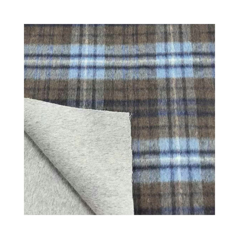Ez a ZZH25003 cikkként megjelölt anyag egy nehéz szőtt textil, amely 50% gyapjúból és 50% egyéb szálakból áll. A 950 g/m területegységre eső tömeggel az anyag jelentős sűrűséget és súlyt mutat. A felületet kockás mintázat jellemzi, amely a kék és a barna tónusokat strukturált rácsformában ötvözi. Ez a súlykategória hozzájárul a szövet szélállóságához és szigetelőképességéhez. A gyapjúkeverék összetétele befolyásolja a textil hőszabályozó tulajdonságait. Ezek a műszaki jellemzők ezt a szövött anyagot alkalmassá teszik téli felöltőkhöz, ahol jelentős védelemre van szükség a hideg időjárás ellen.