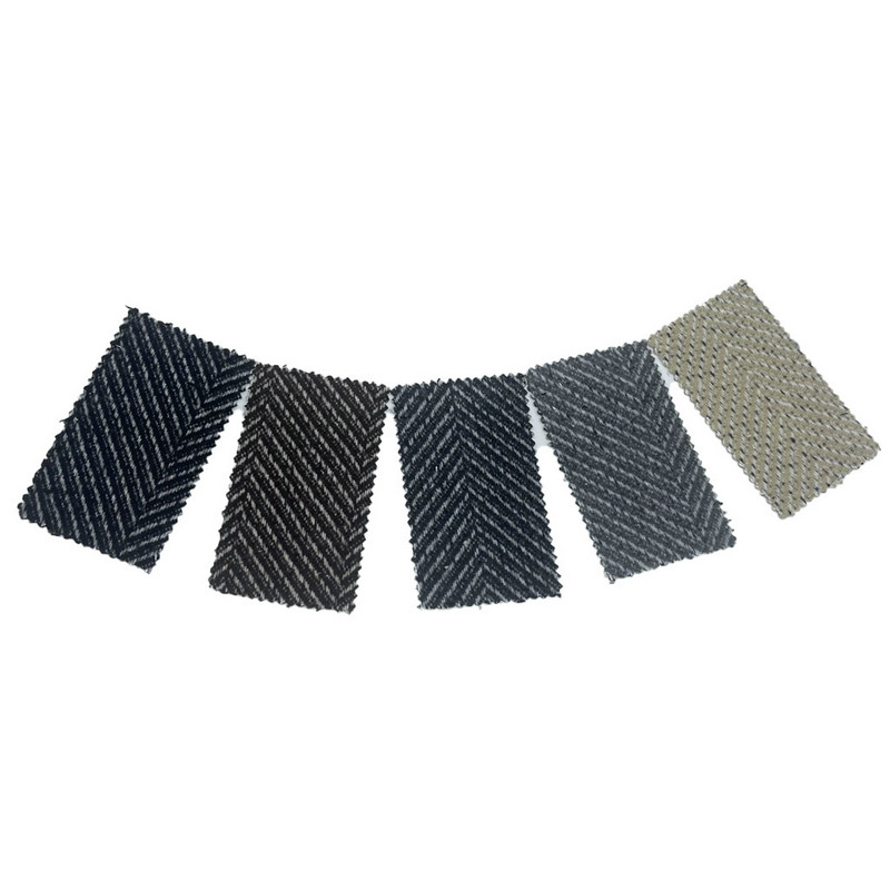 Ez a 4134-es cikkszámú szövet egy jacquard szövésű tweed textil, amely 30% gyapjúból és 70% egyéb szálakból áll. 530 g/m területegységenkénti tömegével közepestől nehéz konstrukciót képvisel. Az anyagon a jacquard szövéssel létrehozott halszálkás minta található, amely precíz V alakú motívumokat formál a textil felületén. Ez a gyártási technika ötvözi a jacquard vizuális meghatározását a halszálkás szövés szerkezeti tartósságával. A gyapjúkeverék összetétele hozzájárul a szövet rugalmasságához és kopásállóságához. Ezek a műszaki jellemzők olyan anyagot eredményeznek, amelynek geometriai mintázata tiszta és szerkezeti integritása van, így alkalmazható olyan autóülések gyártására is, ahol az esztétikus tagolás és a hosszú távú teljesítmény egyaránt szükséges.