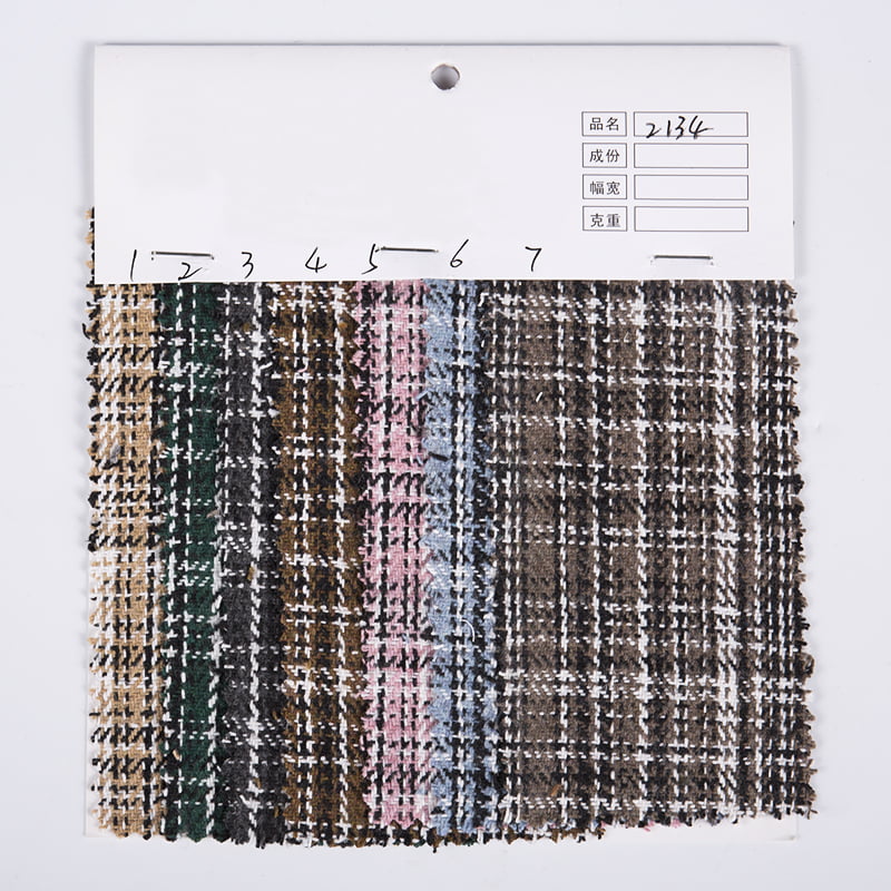 A Black Lines Check Plaid Tweed Fabric 2134 egy kiváló minőségű, 100%-ban vegyi rostból készült szövet termék. A szövet klasszikus fekete vonalakat és finom kockás mintákat használ a dizájn alapvető elemeiként. A fejlett textiltechnológiának köszönhetően a vonalak és a kockás minták tökéletesen integrálódnak, hogy egyedi vizuális hatást alkossanak. Ez a dizájn nemcsak az anyag általános szépségét emeli ki, hanem javítja annak vizuális rétegezettségét és részletgazdagságát is, így egyedi bájt és stílust tud mutatni a különböző ruhagyártás során. Anyag szempontjából a 2134 szövet 100%-ban vegyi szálat használ, kiváló fizikai tulajdonságokkal és kémiai stabilitással rendelkezik. A vegyi szál nagy szilárdságáról, kopásállóságáról, ráncállóságáról, jó rugalmasságáról és alaktartásáról ismert. Ezek a jellemzők lehetővé teszik, hogy a 2134 szövet stabil formát és méretet tartson meg a ruhagyártási folyamat során, és nem könnyű deformálódni vagy ráncosodni. Ugyanakkor a vegyi szál jó antisztatikus és UV-állósággal rendelkezik, amely bizonyos mértékig megvédheti a viselő bőrének egészségét. Ezenkívül a 2134-es szövet gondozása is egyszerű. Mivel maga a vegyi szál nem könnyen felszívja a vizet, és sima felületű, ez a szövet viszonylag könnyen tisztítható és karbantartható, nem könnyen fakul vagy zsugorodik, és hosszú ideig megőrzi új megjelenését és textúráját.
