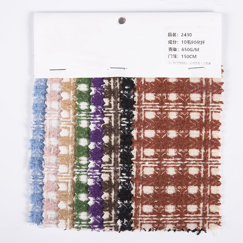 OEM/ODM Csekk fém nehéz jacquard gyapjú tweed szövet női ruházathoz 2430. Több mint 20 éves ipari tapasztalattal rendelkezünk, és jól ismertek a kiváló minőségű szövetekről és fonalakról.