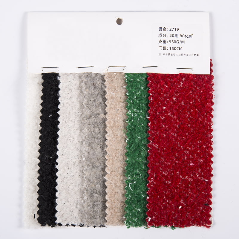 A Multicolors Berber Fleece Tweed Fabric For Women Clothing 2719 gondosan keverve 20% kiváló minőségű gyapjúval és 80% nagy teljesítményű vegyi rosttal. Nemcsak megőrzi a gyapjú természetes melegét és puha tapintását, hanem teljes játékot ad a vegyi szál kopásállóságának, ráncállóságának és könnyű kezelhetőségének. A gyapjú hozzáadása lehetővé teszi, hogy az anyag elegendő meleget biztosítson a hideg évszakokban, míg a vegyi szálak keverése biztosítja az anyag merevségét és tartósságát, lehetővé téve, hogy minden női ruha hosszú ideig megőrizze formáját és színét. A többszínű berber gyapjútweed formatervezési ihletője a hagyományos és a modern kultúra ütközéséből származik. Az egyedi színillesztés és a durva minták összefonódnak, hogy egyedi vizuális hatást alkossanak. Legyen szó élénk és élénk kontrasztos színekről, vagy visszafogott és nyugodt szomszédos színekről, ezek tökéletesen megjelennek ezen az anyagon. Ez a színes dizájn nem csak a női ruházat vizuális szintjét gazdagítja, hanem több illeszkedési lehetőséget és személyiségkifejezést is hoz viselőjének. Ami a gyártási technológiát illeti, fejlett textiltechnológiát alkalmazunk annak érdekében, hogy a szövet minden hüvelykje egyenletes és finom legyen, és kényelmes legyen.