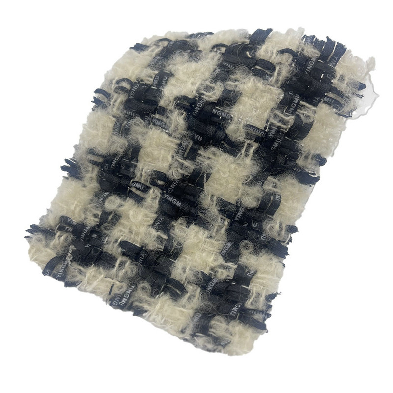 Ez a 23548-as cikkszámú anyag egy gyapjú tweed textil, amely 38% poliészterből, 36% gyapjúból és 26% pamutból áll. 410 g/m2 egységnyi tömegével közepes súlyú szerkezetet képvisel. A törtfehér és fekete színséma kockás mintázatba fonódik, amelyet a felületkefés technika emel ki, amely magasított mackószerű textúrát hoz létre. Ez a befejező eljárás sűrű, rövid bolyhos felületet képez, amely megváltoztatja az anyag tapintási tulajdonságait. A szálösszetétel hozzájárul a szövet szerkezeti stabilitásához és nedvességkezeléséhez. Ezek a tulajdonságok teszik ezt a szálcsiszolt tweedet olyan ruhákhoz, amelyek vizuális mintameghatározást és jellegzetes felületi textúrát igényelnek.