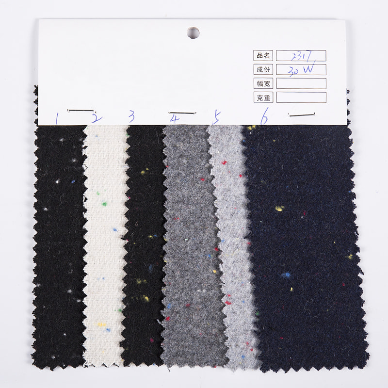 A Plain Woven Multicolors Dots Tweed Fabric 2317 egy szövet termék, amely ötvözi a hagyományos kivitelezést a modern tervezési koncepciókkal. Az anyag a klasszikus sima szövés technológiát alkalmazza, és a precíz lánc- és vetülékszövés révén biztosítja a szövet szerkezeti stabilitását és tartósságát, miközben jó légáteresztő képességet és mérsékelt rugalmasságot biztosít, kielégítve a modern ruházat kettős igényeit a kényelem és a tartósság tekintetében. A mintatervezés szempontjából a 2317-es anyag a többszínű pontokat veszi alapul, és a pontos elrendezés és színillesztés révén egyszerű és részletgazdag vizuális hatást biztosít. Ezek a pöttyös minták nemcsak az anyag vizuális hatását gazdagítják, hanem egyedi divatos ízt is adnak hozzá. Különféle öltözködési stílusokhoz alkalmas, mint például kabátok, ruhák, alkalmi nadrágok stb., és megfelel a különböző alkalmak öltözködési igényeinek. Ami az anyagösszetételt illeti, a 2317 szövet 30% gyapjúból és 70% vegyi szálból álló keveréket alkalmaz. A gyapjú hozzáadása nemcsak javítja a szövet melegségét és tapintását, hanem bizonyos természetes antibakteriális és légáteresztő tulajdonságokat is biztosít, így alkalmasabb az emberi test viselésére. A vegyiszálas komponensek kiválasztása hatékonyan növeli a szövet ráncállóságát, kopásállóságát és kezelhetőségét, így a ruhák kevésbé deformálódnak viselés közben, könnyen tisztíthatók és karbantarthatók, így meghosszabbodik a ruha élettartama.