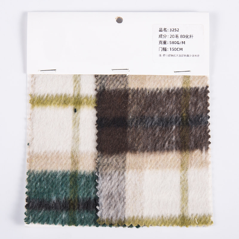 Smooth Hair Wool Polyester Heavyweight Fabric For Overcoats 3252 egy innovatív kevert szövet, amely egyesíti a gyapjú és a vegyi szálak előnyeit. Kifejezetten olyan ruhagyártáshoz készült, amely egyszerre törekszik a kiváló minőségre és a praktikumra. Az anyag precíziósan kevert 20% válogatott gyapjúból és 80% kiváló minőségű vegyi szálból. Ezt a tudományos arányt úgy alakították ki, hogy maximalizálja a két anyag előnyeit. A gyapjú természetes melegségéről és légáteresztő képességéről ismert, amely hatékonyan szabályozza a testhőmérsékletet és fenntartja a kényelmes viselési környezetet, különösen alkalmas a hideg évszakok viselésére. A vegyi szál hozzáadása jelentősen javítja a szövet ráncállóságát, kopásállóságát és rugalmasságát, így az anyag könnyebben ápolható, miközben megőrzi a hosszú távú morfológiai stabilitást. A szövet nehéz kialakítású, hogy biztosítsa a szövet vastagságát és merevségét, jó alátámasztást és formáló hatást biztosítva a kabátnak, simábbá és háromdimenziósabbá téve a vágási vonalakat, megmutatva a csúcskategóriás ruházat kifinomultságát és eleganciáját. A sima és lapos felületkezelés nemcsak az anyag tapintását és vizuális hatását javítja, hanem a viselet kényelmét és a ruházat divatérzetét is fokozza. Ezenkívül a gyapjú és a vegyi szál keverése hatékonyan elkerüli a tiszta gyapjúszövet hiányosságait, például a zsugorodást és a foltosodást, javítja az anyag tartósságát és praktikusságát, valamint meghosszabbítja a ruházat élettartamát.