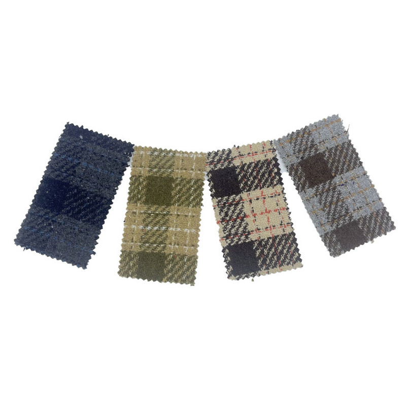 Ez a 4144-es cikkszámú szövet egy jacquard tweed textil, amely 10% gyapjúból és 90% egyéb szálakból áll. 550 g/m területegységenkénti tömegével nehéz szerkezetet képvisel. A zöld felület a twill szövésű alapot ötvözi csíkos kockás mintákkal, amelyeket a lineáris sávokat és a rácsos formációkat integráló jacquard eljárással hoztak létre. Ez a technika metsző mintákat hoz létre a jellegzetes átlós twill textúrán. A gyapjúkeverék összetétele hozzájárul a szövet méretstabilitásához és tartósságához. Ezek a műszaki jellemzők többrétegű mintázatú és szerkezeti sűrűségű anyagot eredményeznek, így alkalmazható olyan ruházati cikkekhez, ahol összetett dizájnelemekre és szövetrugalmasságra van szükség.