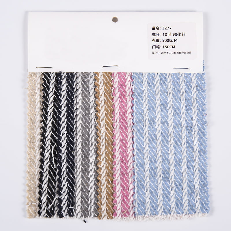 Otthon / Termékek / Szövött szövet / Tweed szövet / Csavart csíkos gyapjú poliészter jacquard szövet 3277