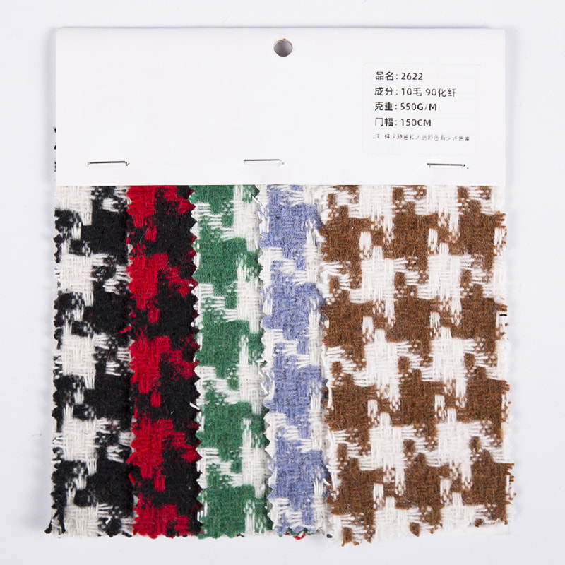 A 2622 Windmill Tweed Fabric fő nyersanyagként kiváló minőségű gyapjút (vagy gyapjúkeveréket) használ. A precíz fonási és szövési technológiának, valamint a különféle szervezeti struktúráknak, például a sima szövésnek és a twillnek kombinálásával erős és rugalmas szövetalap jön létre. Felületének egyedi szélmalommintája jacquard technológiával gondosan szőtt. A minta tiszta, a szín telt, nem könnyű kifakulni. Ezenkívül az anyag többszöri mosási, csiszolási és befejezési folyamatokon esett át, ami hatékonyan javítja sűrűségét és tartósságát, biztosítva a viselet kényelmét és tartósságát.